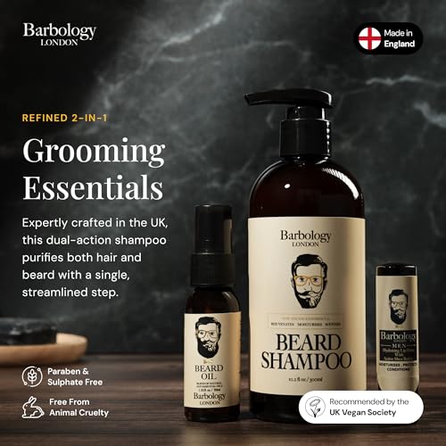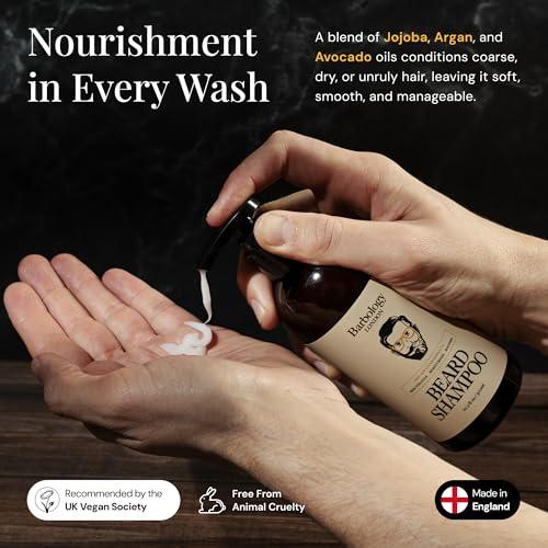 2-in-1 Beard and Face Shampoo for Men with Jojoba Oil, Argan Oil, and Avocado Oil, Conditions Dry, Itchy and Coarse Facial Hair, 10oz Pump