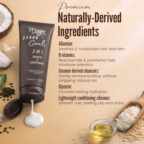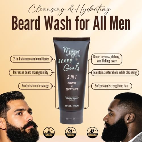 2-in-1 Beard Wash & Conditioner for Men – Gentle Men’s Shampoo for Beard Care & Growth, Softens, Soothes, Hydrates, & Nourishes Facial Hair, With Natural Ingredients – 7oz