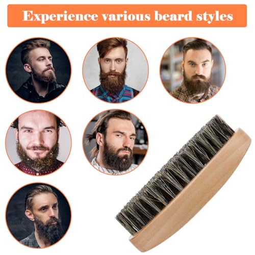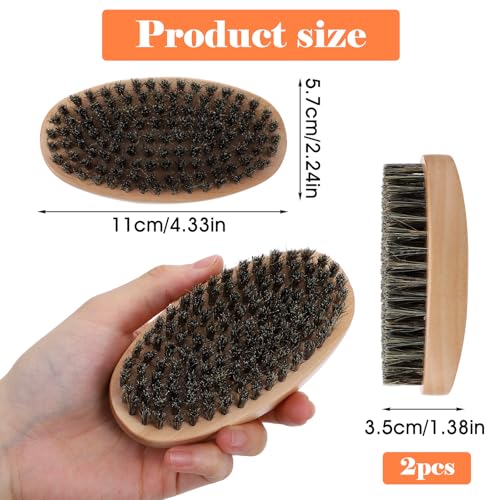 2PCS Beard Brush & 360 Wave Brush for Men, Medium Hard Palm Brushes for Laying Down 360 Waves, Wooden Handle, Soft Nylon Brushes For Fuller, Thicker Hair, Beard & Mustache