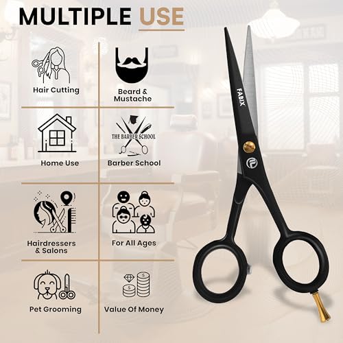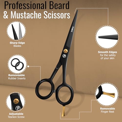 5” Professional Beard Mustache Scissors with 1 Beard Comb, 1 Mustache Comb and Travel Pouch – Perfect Beard Trimming Scissors for All Facial Hair Scissors – Grooming Scissors