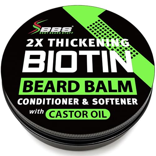 Biotin Beard Balm for Men – 2X Thickening for Beard and Mustache – Organic Mustache Wax with Castor Oil & Meadowfoam – Hydrating Facial Hair Growth Balm & Leave-In Conditioner