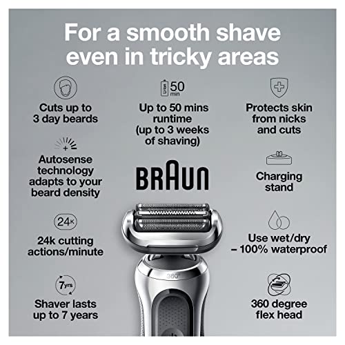 Braun Series 7 7032cs Flex Electric Razor for Men, Wet & Dry, Electric Razor, Rechargeable, Cordless Foil Shaver with Beard Trimmer and Charging Stand, Silver