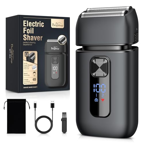 Brightup Electric Foil Shavers for Men – Smooth & Close Electric Razor for Men with Pop Up Trimmer – Wet Dry Shaving/Travel Lock/LED Display/IPX6 Waterproof