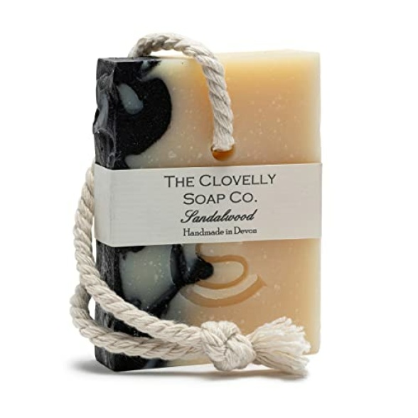 Clovelly Soap Co Natural Handmade Soap on a rope Bar (Sandalwood, 100g) For all skin types.