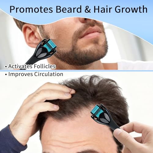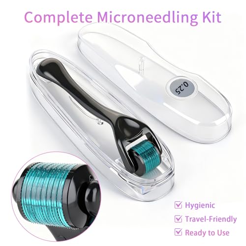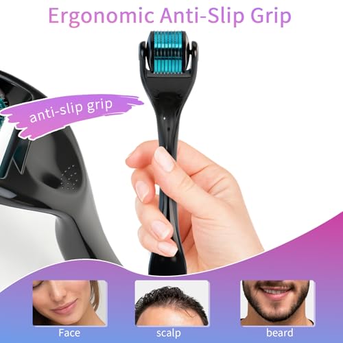 Derma Roller for Hair Growth & Beard – 540 Titanium Microneedle Roller for Face & Scalp – Skin Care Microneedling Kit with Sanitizer Box for Men & Women