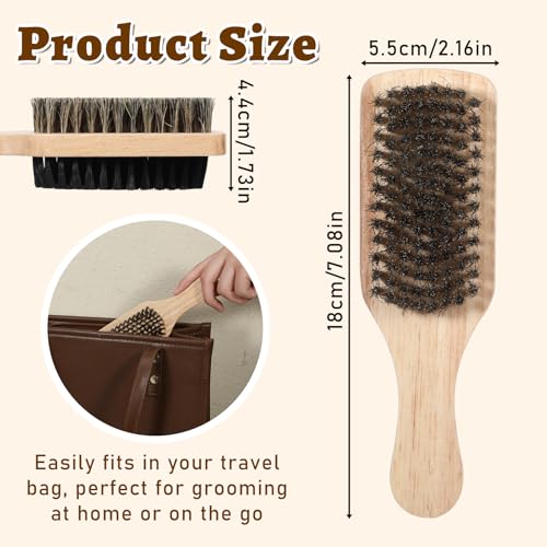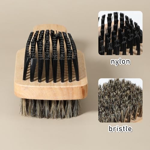 2PCS Beard Brush & 360 Wave Brush for Men, Medium Hard Palm Brushes for Laying Down 360 Waves, Wooden Handle, Soft Nylon Brushes For Fuller, Thicker Hair, Beard & Mustache