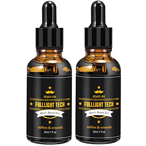 FULLLIGHT TECH 2 Pack Beard Oil for Men Growth 100% Natural Argan Oil,Jojoba Oil Leave in Conditioner Softener for Mustache Grooming Moisturizing