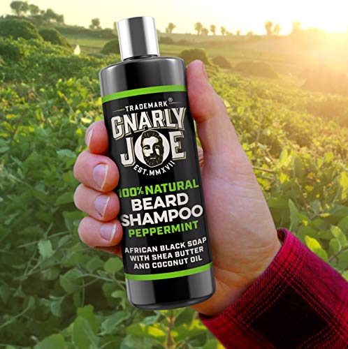 Gnarly Joe 100% Natural Beard Shampoo for Men: A Unique African Black Soap Recipe. Beard Wash with Pure Shea Butter, Coconut Oil, Scented with Refreshing Peppermint Essential Plant Oil.