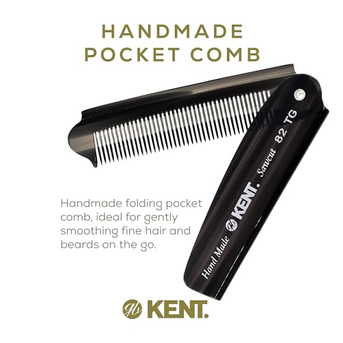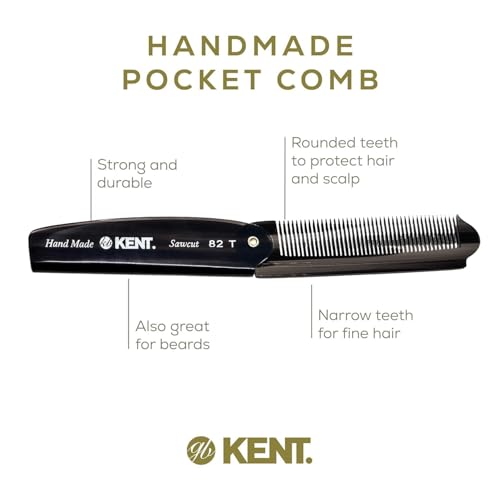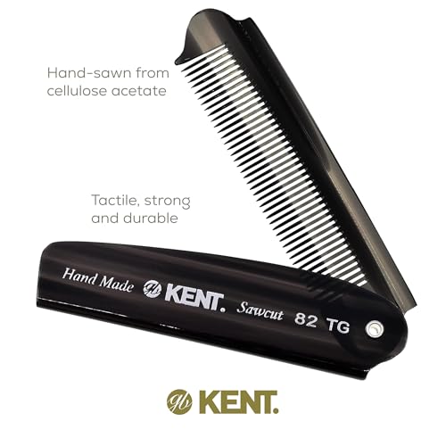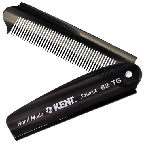 Kent 82T Black Graphite Folding Pocket Comb for Men, Fine Tooth Hair Comb Straightener for Everyday Grooming, Beard or Mustache, Use Dry or with Balms, Saw Cut Hand Polished, Made in England