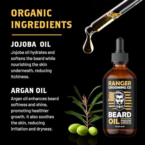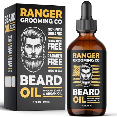 Leven Rose Ranger Grooming Unscented Beard Oil for Men – Organic Jojoba & Argan Oil – Fragrance Free – Made in USA – 1 FL OZ / 30 ML