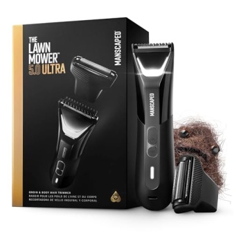 MANSCAPED® The Lawn Mower® 5.0 Ultra Groin & Body Hair Trimmer – Dual-Head SkinSafe® Trimmer & Foil Blades, Waterproof Wet/Dry Groomer, USB-C Rechargeable with Travel Case, Men’s Ball Shaver, Black