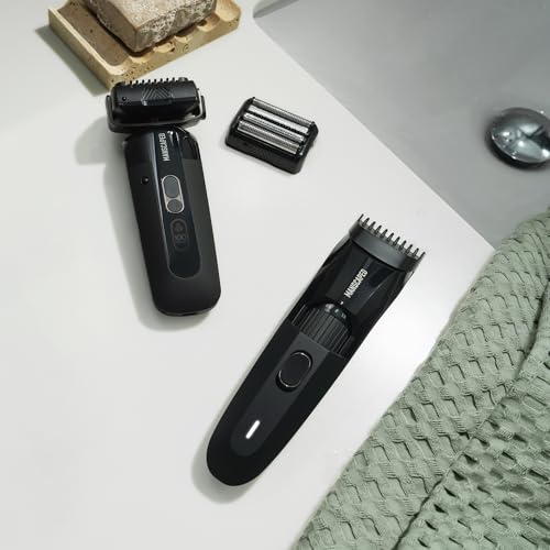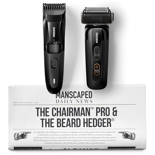 MANSCAPED® The Chairman™ PRO Men’s Electric Foil Face Shaver & The Beard Hedger® Men’s Beard Trimmer, 20 Length Adjustable Blade Wheel, Stainless Steel T-Blade for Precision Facial Hair Trimming