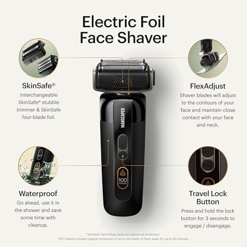 MANSCAPED® The Handyman™ Compact Face Shaver – Portable Men’s Travel Facial Hair Groomer, USB-C Rechargeable Razor, Electric Foil Face Shaver, Waterproof, Cordless, Dual-Action SkinSafe® Foil Blades