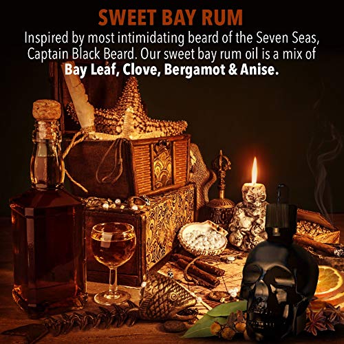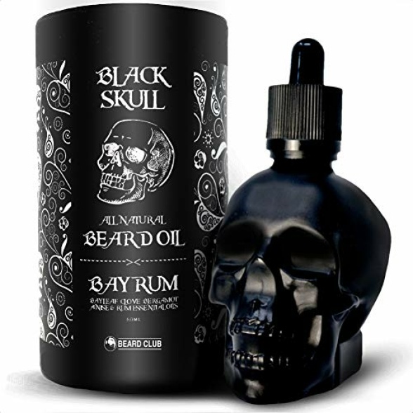 Beard Club Black Skull Beard Oil 60ml – Bay Rum Scented Beard Oil for Men – Beard Softener for Men with Argan Oil for Beard Conditioning and Maintaining – Natural Mens Beard Oil Skull Moustache Oil