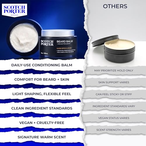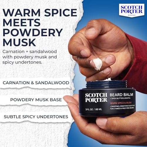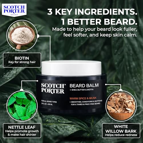 Scotch Porter Conditioning Beard Balm – Smooth, Shape, Moisturize & Soften Coarse, Dry Facial Hair while Encouraging Growth for a Fuller/Healthier-Looking Beard – Original Scent, 3 oz. Jar