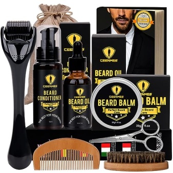 Ceenwes Upgraded Beard Grooming Kit – Conditioner, Oil, Brush, Comb, Balm, Scissors, Storage Bag for Beard and Mustache Trimming, Perfect Men’s Gift
