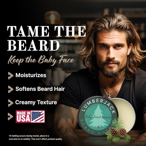 Tuscan Cooper’s Baby Faced Beards Butter for Men – Moisturizing Beard Balm Cream and Softener for All Hair Types Including Coarse Hair – 4oz Hydration and Conditioning Care – Lumberjack Scent