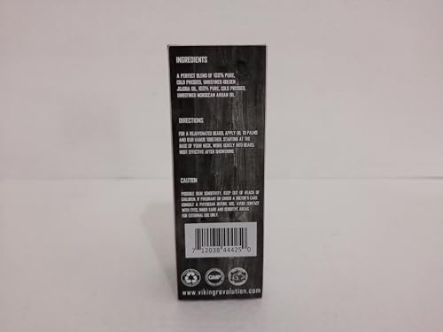 Viking Revolution Unscented Beard Oil for Men – Natural Mens Beard Oil with Argan Oil and Jojoba Oil – Beard Softener, Strengthens and Moisturizes – Beard Conditioner for Men (Unscented, 1 Pack)